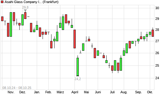Mit dem Anstieg auf 28,20 EUR hat die Asahi Glass Company-Aktie (ISIN JP3112000009) am 07.10.2025 ein neues 6-Monats-Hoch erreicht und damit den Kurs vom 06.10.2025 eingestellt.Die Asahi Glass ...weiterlesen