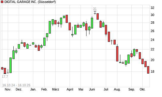Mit dem Rücksetzer auf 18,20 EUR hat die Digital Garage-Aktie (ISIN JP3549070005) am 15.10.2025 ein neues 6-Monats-Tief erreicht und damit den Kurs vom 14.10.2025 eingestellt.Die Digital ...weiterlesen