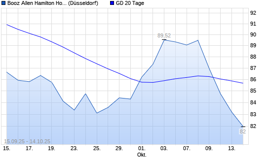 Mit dem Rücksetzer auf 83,48 EUR hat die Booz Allen Hamilton-Aktie am 13.10.2025 die 20-Tage-Linie nach unten gekreuzt.Die Booz Allen Hamilton-Aktie befindet sich seit dem 26.11.2024 im ...weiterlesen