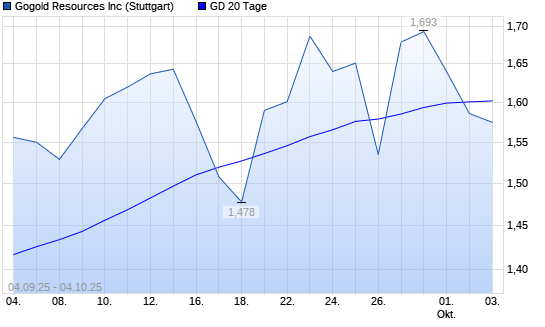Mit dem Rücksetzer auf 1,54 EUR hat die GoGold Resources-Aktie am 03.10.2025 die 20-Tage-Linie nach unten gekreuzt.Die GoGold Resources-Aktie befindet sich seit dem 10.04.2025 im langfristigen ...weiterlesen