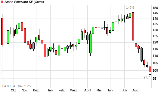 Mit dem Rücksetzer auf 99,50 EUR hat die Atoss Software-Aktie (ISIN DE0005104400) am 03.09.2025 ein neues 12-Monats-Tief erreicht und damit den Kurs vom 02.09.2025 eingestellt.Die Atoss ...weiterlesen