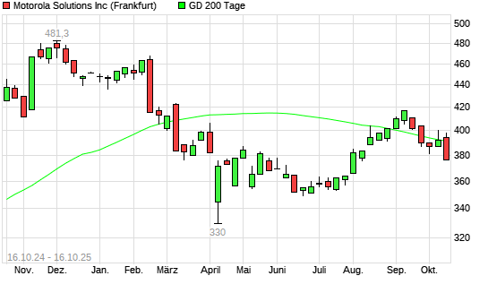 Mit dem Rücksetzer auf 377,70 EUR hat die Motorola Solutions-Aktie am 15.10.2025 die 200-Tage-Linie nach unten gekreuzt.Die Motorola Solutions-Aktie befand sich seit dem 08.10.2025 im langfristigen ...weiterlesen