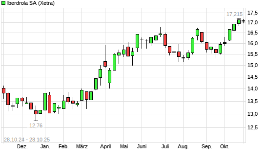 Mit dem Anstieg auf 17,15 EUR hat die Iberdrola-Aktie (ISIN ES0144580Y14) am 27.10.2025 ein neues All-Time-High erreicht und damit den Kurs vom 20.10.2025 eingestellt.Die Iberdrola-Aktie befindet ...weiterlesen