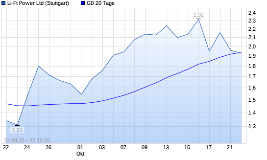 Mit dem Rücksetzer auf 1,91 EUR hat die Li-Ft Power-Aktie am 21.10.2025 die 20-Tage-Linie nach unten gekreuzt.Die Li-Ft Power-Aktie befindet sich seit dem 25.09.2025 im langfristigen Aufwärtstrend ...weiterlesen