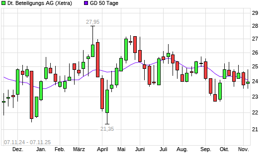 Mit dem Anstieg auf 24,50 EUR hat die Deutsche Beteiligungs-Aktie am 06.11.2025 die 50-Tage-Linie nach oben gekreuzt.Die Deutsche Beteiligungs-Aktie befindet sich seit dem 10.10.2025 ...weiterlesen