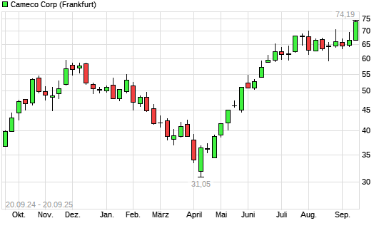 Mit dem Anstieg auf 73,71 EUR hat die Cameco-Aktie (ISIN CA13321L1085) am 19.09.2025 ein neues All-Time-High erreicht und damit den Kurs vom 15.09.2025 eingestellt.Die Cameco-Aktie befindet ...weiterlesen