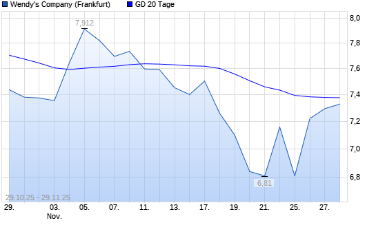 Mit dem Rücksetzer auf 7,30 EUR hat die The Wendy's Company-Aktie am 28.11.2025 die 20-Tage-Linie nach unten gekreuzt.Die The Wendy's Company-Aktie befindet sich seit dem 12.12.2024 im ...weiterlesen