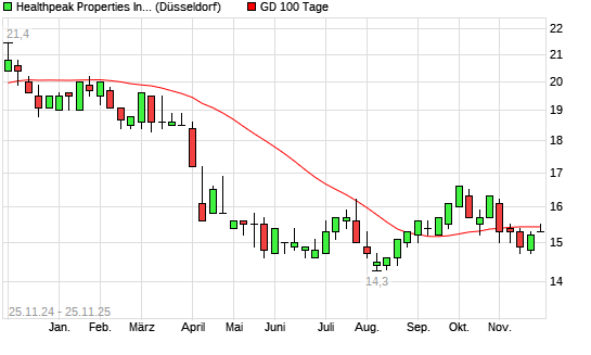 Mit dem Anstieg auf 15,50 EUR hat die Healthpeak Properties-Aktie am 24.11.2025 die 100-Tage-Linie nach oben gekreuzt.Die Healthpeak Properties-Aktie befindet sich seit dem 03.03.2025 im langfristigen ...weiterlesen