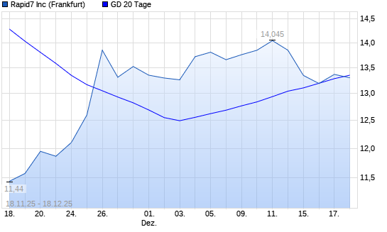 Mit dem Anstieg auf 13,35 EUR hat die Rapid7-Aktie am 17.12.2025 die 20-Tage-Linie nach oben gekreuzt.Die Rapid7-Aktie befindet sich seit dem 12.02.2025 im langfristigen Abwärtstrend ...weiterlesen