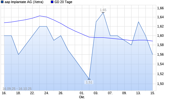 Mit dem Rücksetzer auf 1,53 EUR hat die Aap Implantate-Aktie am 15.10.2025 die 20-Tage-Linie nach unten gekreuzt.Die Aap Implantate-Aktie befindet sich seit dem 08.10.2025 im langfristigen ...weiterlesen