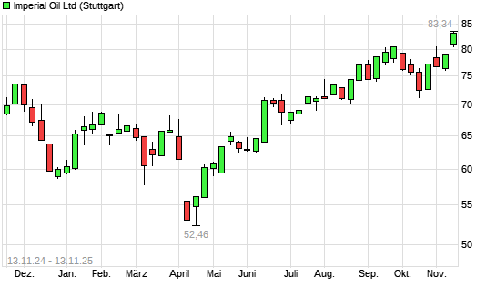 Mit dem Anstieg auf 82,64 EUR hat die Imperial Oil-Aktie (ISIN CA4530384086) am 12.11.2025 ein neues All-Time-High erreicht und damit den Kurs vom 11.11.2025 eingestellt.Die Imperial Oil-Aktie ...weiterlesen