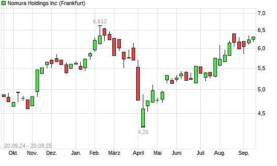 Mit dem Anstieg auf 6,31 EUR hat die Nomura-Aktie (ISIN JP3762600009) am 19.09.2025 ein neues 6-Monats-Hoch erreicht und damit den Kurs vom 16.09.2025 eingestellt.Die Nomura-Aktie befindet sich ...weiterlesen