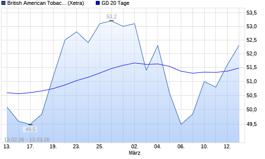 Mit dem Anstieg auf 51,80 EUR hat die British American Tobacco-Aktie am 12.03.2026 die 20-Tage-Linie nach oben gekreuzt.Die British American Tobacco-Aktie befindet sich seit dem ...weiterlesen