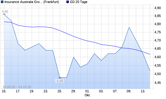 Mit dem Rücksetzer auf 4,62 EUR hat die Insurance Australia Group-Aktie am 13.10.2025 die 20-Tage-Linie nach unten gekreuzt.Die Insurance Australia Group-Aktie befindet sich seit dem 10.10.2025 ...weiterlesen