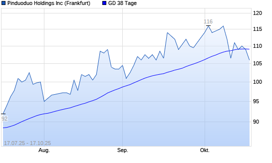 Mit dem Rücksetzer auf 109,00 EUR hat die Pinduoduo-Aktie am 16.10.2025 die 38-Tage-Linie nach unten gekreuzt.Die Pinduoduo-Aktie befindet sich seit dem 15.08.2025 im langfristigen Aufwärtstrend ...weiterlesen