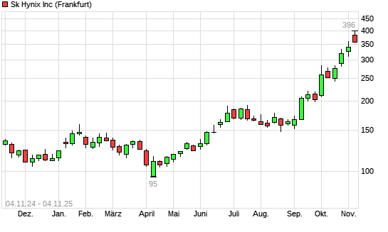 Mit dem Anstieg auf 389,00 EUR hat die SK Hynix-Aktie (ISIN US78392B1070) am 03.11.2025 ein neues All-Time-High erreicht und damit den Kurs vom 29.10.2025 eingestellt.Die SK Hynix-Aktie befindet ...weiterlesen