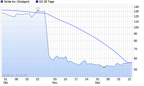 Mit dem Anstieg auf 55,50 EUR hat die Stride-Aktie am 26.12.2025 die 38-Tage-Linie nach oben gekreuzt.Die Stride-Aktie befindet sich seit dem 28.10.2025 im langfristigen Abwärtstrend und hat ...weiterlesen