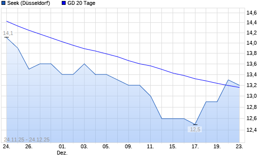 Mit dem Anstieg auf 13,20 EUR hat die Seek-Aktie am 23.12.2025 die 20-Tage-Linie nach oben gekreuzt.Die Seek-Aktie befindet sich seit dem 26.11.2025 im langfristigen Abwärtstrend und hat in ...weiterlesen
