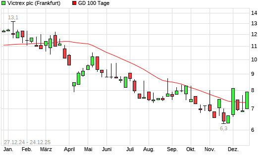 Mit dem Anstieg auf 7,90 EUR hat die Victrex-Aktie am 23.12.2025 die 100-Tage-Linie nach oben gekreuzt.Die Victrex-Aktie befindet sich seit dem 07.03.2025 im langfristigen Abwärtstrend und hat ...weiterlesen