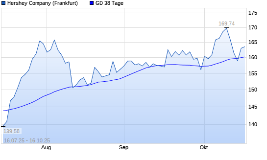 Mit dem Anstieg auf 163,08 EUR hat die Hershey Company-Aktie am 15.10.2025 die 38-Tage-Linie nach oben gekreuzt.Die Hershey Company-Aktie befindet sich seit dem 20.08.2025 im langfristigen Aufwärtstrend ...weiterlesen