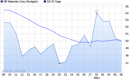 Mit dem Anstieg auf 50,20 EUR hat die MP Materials-Aktie am 06.03.2026 die 20-Tage-Linie nach oben gekreuzt.Die MP Materials-Aktie befindet sich seit dem 05.03.2026 im ...weiterlesen