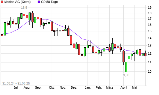 Mit dem Rücksetzer auf 11,70 EUR hat die Medios-Aktie am 30.05.2025 die 50-Tage-Linie nach unten gekreuzt.Die Medios-Aktie befindet sich seit dem 13.11.2024 im langfristigen Abwärtstrend ...weiterlesen