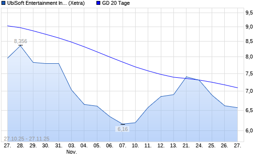 Mit dem Rücksetzer auf 6,66 EUR hat die Ubisoft-Aktie am 26.11.2025 die 20-Tage-Linie nach unten gekreuzt.Die Ubisoft-Aktie befindet sich seit dem 28.03.2025 im langfristigen Abwärtstrend ...weiterlesen
