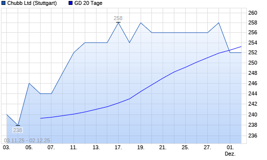Mit dem Rücksetzer auf 250,00 EUR hat die Chubb-Aktie am 01.12.2025 die 20-Tage-Linie nach unten gekreuzt.Die Chubb-Aktie befindet sich seit dem 12.11.2025 im langfristigen Aufwärtstrend ...weiterlesen