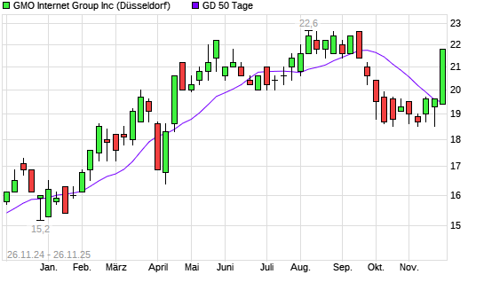 Mit dem Rücksetzer auf 19,50 EUR hat die GMO INTERNET-Aktie am 25.11.2025 die 50-Tage-Linie nach unten gekreuzt.Die GMO INTERNET-Aktie befindet sich seit dem 02.10.2025 im langfristigen ...weiterlesen