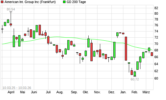 Mit dem Rücksetzer auf 67,34 EUR hat die AIG-Aktie am 09.03.2026 die 200-Tage-Linie nach unten gekreuzt.Die AIG-Aktie befand sich seit dem 06.03.2026 im langfristigen ...weiterlesen