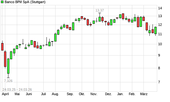 Mit dem Rücksetzer auf 10,85 EUR hat die Banco BPM-Aktie (ISIN IT0005218380) am 23.03.2026 ein neues 6-Monats-Tief erreicht und damit den Kurs vom 09.03.2026 eingestellt.Die ...weiterlesen