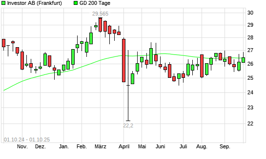 Mit dem Anstieg auf 26,88 EUR hat die Investor B-Aktie am 30.09.2025 die 200-Tage-Linie nach oben gekreuzt.Die Investor B-Aktie befand sich seit dem 24.09.2025 im langfristigen Abwärtstrend ...weiterlesen
