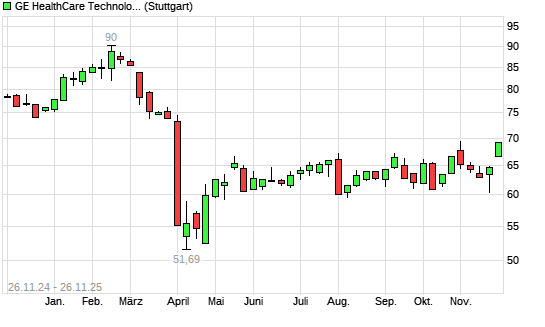 Mit dem Anstieg auf 69,78 EUR hat die GE Healthcare Technologies-Aktie (ISIN US36266G1076) am 25.11.2025 ein neues 6-Monats-Hoch erreicht und damit den Kurs vom 28.10.2025 eingestellt.Die GE ...weiterlesen