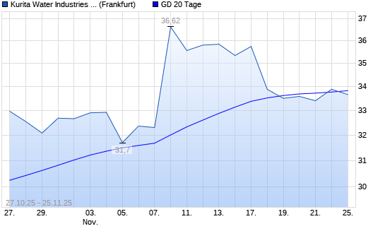 Mit dem Anstieg auf 33,88 EUR hat die Kurita Water Industries-Aktie am 24.11.2025 die 20-Tage-Linie nach oben gekreuzt.Die Kurita Water Industries-Aktie befindet sich seit dem 21.10.2025 im ...weiterlesen