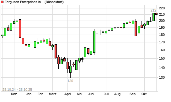 Mit dem Anstieg auf 214,00 EUR hat die Ferguson Enterprises-Aktie (ISIN US31488V1070) am 27.10.2025 ein neues 6-Monats-Hoch erreicht und damit den Kurs vom 22.10.2025 eingestellt.Die Ferguson ...weiterlesen