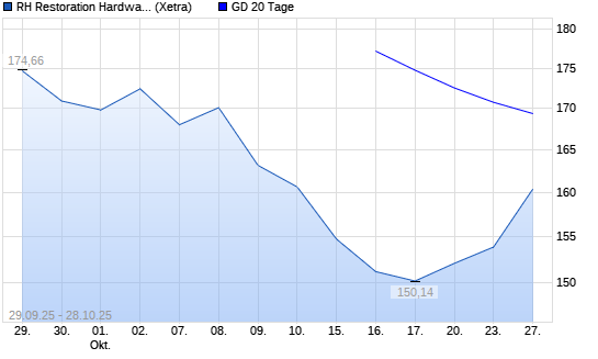 Mit dem Anstieg auf 160,22 EUR hat die RH-Aktie am 27.10.2025 die 20-Tage-Linie nach oben gekreuzt.Der Abstand zur 200-Tage-Linie beträgt aktuell -21,94%. ...weiterlesen