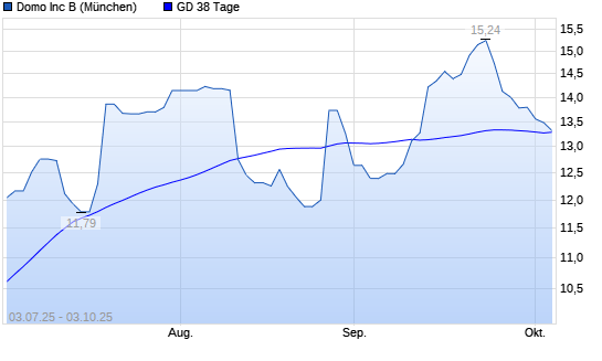 Mit dem Rücksetzer auf 13,11 EUR hat die Domo-Aktie am 02.10.2025 die 38-Tage-Linie nach unten gekreuzt.Die Domo-Aktie befindet sich seit dem 09.05.2025 im langfristigen Aufwärtstrend und ...weiterlesen
