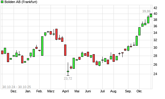 Mit dem Anstieg auf 39,78 EUR hat die Boliden AB-Aktie (ISIN SE0020050417) am 29.10.2025 ein neues 12-Monats-Hoch erreicht und damit den Kurs vom 28.10.2025 eingestellt.Die Boliden AB-Aktie ...weiterlesen
