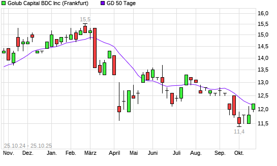Mit dem Anstieg auf 12,20 EUR hat die GOLUB CAPITAL BDC-Aktie am 24.10.2025 die 50-Tage-Linie nach oben gekreuzt.Die GOLUB CAPITAL BDC-Aktie befindet sich seit dem 31.03.2025 im langfristigen ...weiterlesen