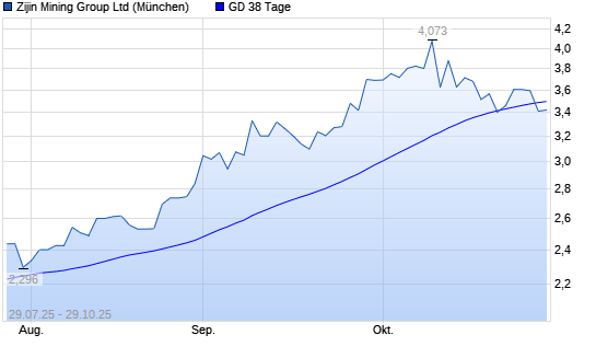 Mit dem Rücksetzer auf 3,37 EUR hat die Zijin Mining-Aktie am 28.10.2025 die 38-Tage-Linie nach unten gekreuzt.Die Zijin Mining-Aktie befindet sich seit dem 14.04.2025 im langfristigen ...weiterlesen