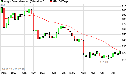 Mit dem Rücksetzer auf 121,75 EUR hat die Insight Enterprises-Aktie am 25.07.2025 die 100-Tage-Linie nach unten gekreuzt.Die Insight Enterprises-Aktie befindet sich seit dem 31.10.2024 ...weiterlesen