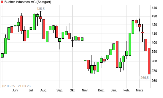 Mit dem Rücksetzer auf 363,50 EUR hat die Bucher Industries-Aktie (ISIN CH0002432174) am 20.03.2026 ein neues 6-Monats-Tief erreicht und damit den Kurs vom 18.11.2025 ...weiterlesen