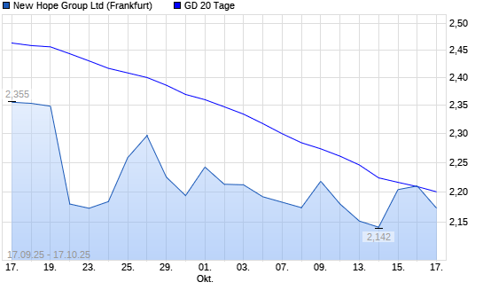 Mit dem Anstieg auf 2,21 EUR hat die New Hope-Aktie am 16.10.2025 die 20-Tage-Linie nach oben gekreuzt.Die New Hope-Aktie befindet sich seit dem 17.09.2025 im langfristigen Abwärtstrend und ...weiterlesen