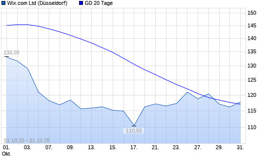 Mit dem Rücksetzer auf 116,35 EUR hat die Wix.com-Aktie am 30.10.2025 die 20-Tage-Linie nach unten gekreuzt.Die Wix.com-Aktie befindet sich seit dem 07.03.2025 im langfristigen Abwärtstrend ...weiterlesen