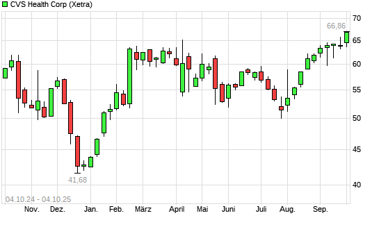 Mit dem Anstieg auf 65,95 EUR hat die CVS Health-Aktie (ISIN US1266501006) am 03.10.2025 ein neues 12-Monats-Hoch erreicht und damit den Kurs vom 02.10.2025 eingestellt.Die CVS Health-Aktie ...weiterlesen