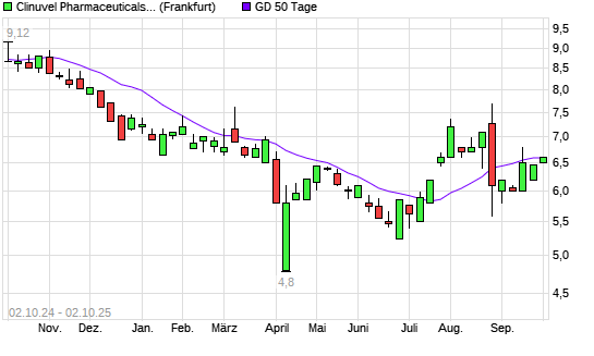Mit dem Anstieg auf 6,61 EUR hat die Clinuvel Pharmaceuticals-Aktie am 01.10.2025 die 50-Tage-Linie nach oben gekreuzt.Die Clinuvel Pharmaceuticals-Aktie befindet sich seit dem 29.09.2025 im ...weiterlesen