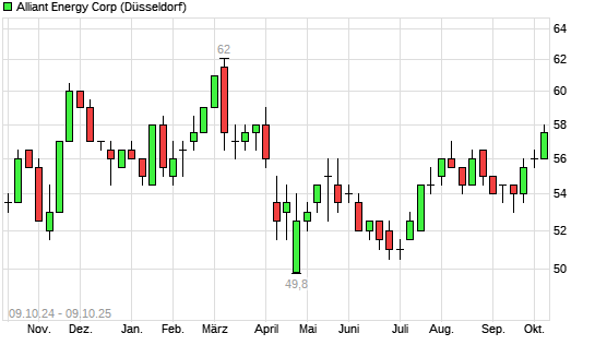 Mit dem Anstieg auf 58,50 EUR hat die Alliant Energy-Aktie (ISIN US0188021085) am 08.10.2025 ein neues 6-Monats-Hoch erreicht und damit den Kurs vom 07.10.2025 eingestellt.Die Alliant Energy-Aktie ...weiterlesen