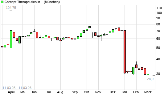 Mit dem Rücksetzer auf 28,68 EUR hat die Corcept Therapeuticsorpora-Aktie (ISIN US2183521028) am 10.03.2026 ein neues 12-Monats-Tief erreicht und damit den Kurs vom ...weiterlesen