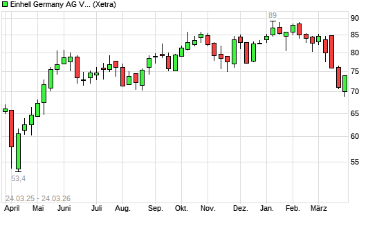 Mit dem Rücksetzer auf 69,50 EUR hat die Einhell Germany-Aktie (ISIN DE000A40ESU3) am 23.03.2026 ein neues 6-Monats-Tief erreicht und damit den Kurs vom 19.03.2026 ...weiterlesen