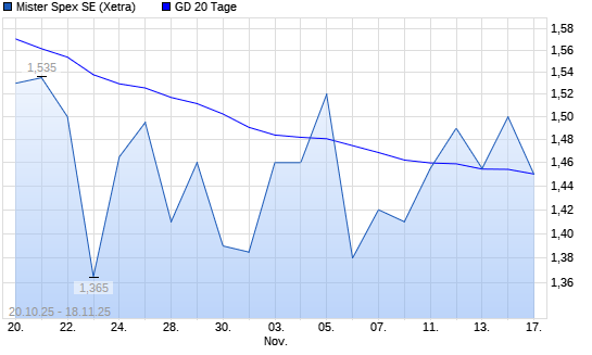 Mit dem Rücksetzer auf 1,40 EUR hat die Mister Spex-Aktie am 17.11.2025 die 20-Tage-Linie nach unten gekreuzt.Die Mister Spex-Aktie befindet sich seit dem 02.10.2025 im langfristigen Abwärtstrend ...weiterlesen